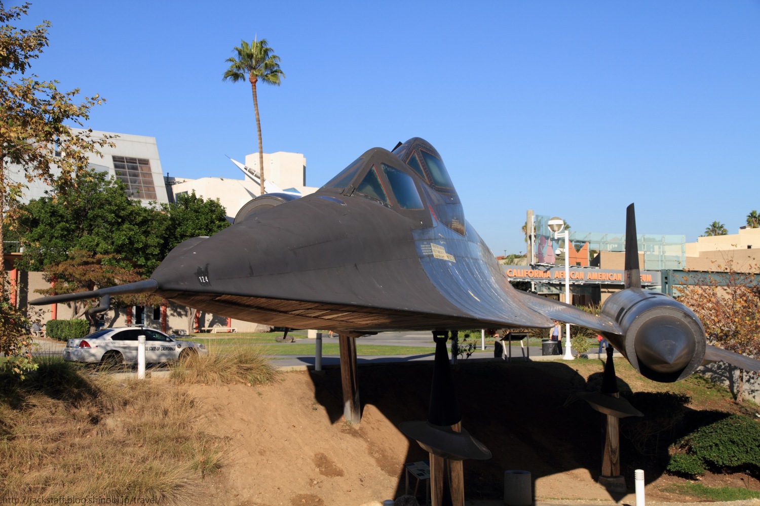 2012年9月、ロサンゼルス上空に二機のF/A-18にエスコートされたB747が現れ、ハリウッドサインをかすめ飛びながらLAXへと降り立った。 このNASAの名を掲げたB747に背負われていたのが退役したオービタ、そう、あのエンデバーだった。 フロリダ州のケネディ宇宙センターから大陸を横断し、カリフォルニア州エドワード空軍基地などを経由した後、サクラメントやサンフランシスコといった都市をローパスで飛行し、ロサンゼルスへ。悪天候のため予定より2日ずれ込んだラストフライトであった。また、このエンデバーが製造されたのはカリフォルニア州のパームデール、退役後に生まれ故郷へ帰ってきたことになる。 カリフォルニアの大地を再び踏んだスペースシャトル、エンデバーがその地上を、建造物をギリギリで交わしながら時速2マイルと言う驚くほどゆっくりとしたペースでカリフォルニア科学センターへと向かって行く姿はネットを中心に多くのメディアで取り沙汰された。その迫力ある映像に誰もが釘付けになり、固唾を飲んで見守ったことだろう。 そんなカリフォルニア科学センターへ借りたばかりのレンタカーで向かっている。 サウス・フィギュエロア・ストリートを南下していくと右手にDC-8が見えてきた。とりあえずそこのロータリーに入り地下駐車場入口まで車を寄せたのだがゲートが開かずインターホンを押しても返答が無かった。やはり一般入口ではなかったようだ。 少し先にあった一般入り口から入り直し、駐車場の端に車を止めた。今回は車で来たがもちろんメトロを利用して来ることも出来る。 以前あれはハセガワ製だったかイタレリ製だったかのSR-71を作ったがあっさりしたモールドとマットブラックでの塗装、シンプルなパーツ構成であまり楽しくなかった記憶がある、が好きな機体だ。