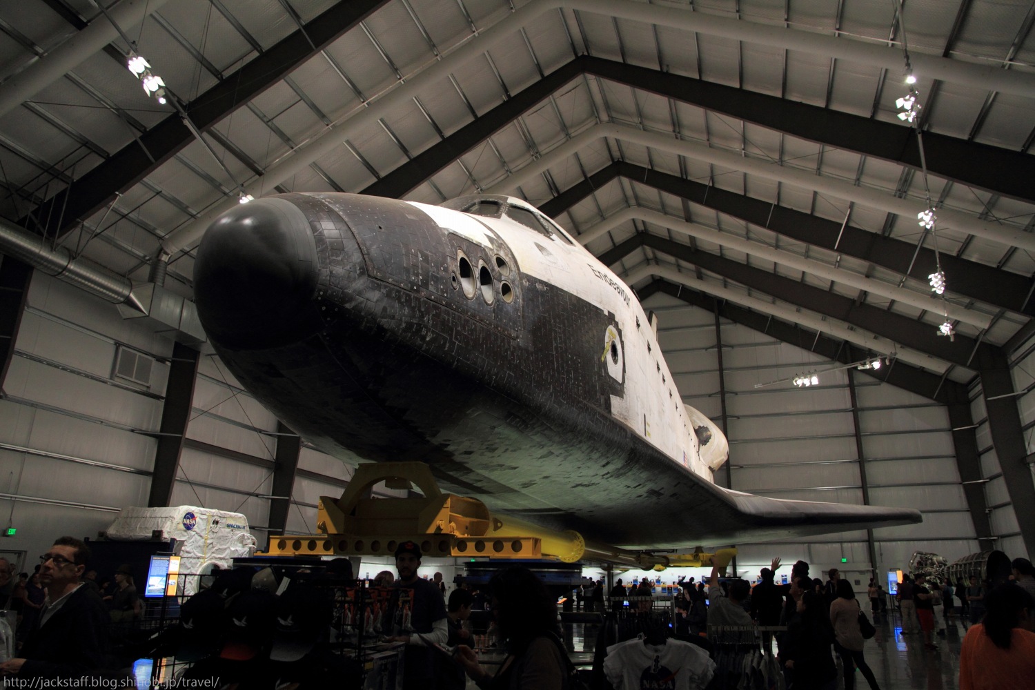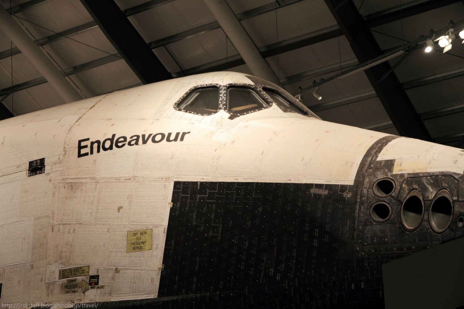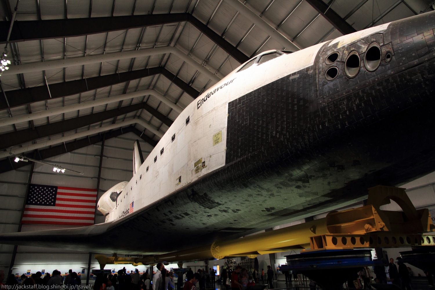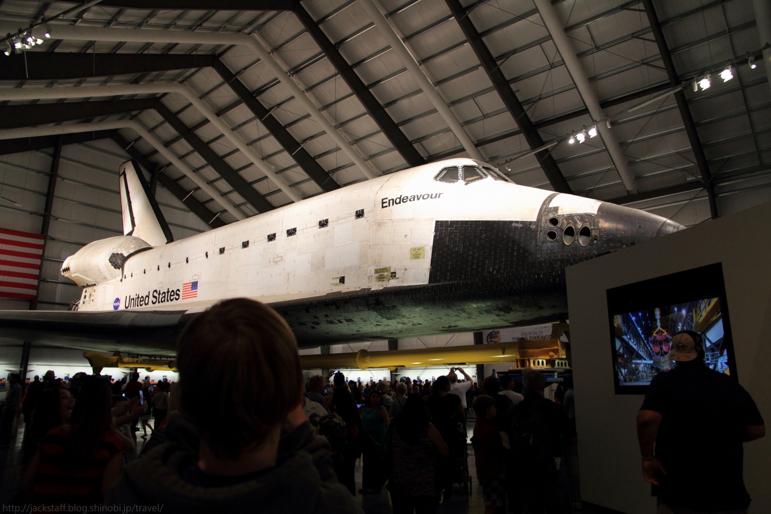オービタとは軌道船部分であるこの機体のこと、スペースシャトルとは厳密にはオービタに補助ブースターと燃料タンクが合体した状態、もしくはこのプロジェクト自体のことを言う。エンデバーのOV-105というのはOrbiter Vehicleの略だ。 このオービタはこれまで実験機のエンタープライズ含め6機だけが実機として製造されたわけだが、エンデバーが製造されたのは1986年のあのチャレンジャー爆発事故により損失した機体の補充のためだった。1992年の初ミッションから2011年の引退まで25回のフライトでNASAを支えた最も若い機体だったわけだ。 そんなスペースシャトル計画も2011年のアトランティスでのミッションを最後に終了してしまった。 それこそ僕らのように80年代後期生まれにとっては物心ついた頃から宇宙への旅と言えばシャトルによるものであったわけだが、1981年の初飛行の時はきっと当時の子供達は、従来のロケットによる手段ではなく乗り物として帰還出来る新しい時代の到来に目を輝かせたことだろう。もしかすると30年先の未来に手軽な宇宙旅行の姿をイメージしていたかもしれない。そして僕達もまたこの方法がこれからもスタンダードだと疑ってやまなかった。 だが現実は違った。2003年のコロンビア空中分解事故、それに伴う安全対策の見直しでただでさえ試算以上のコストがかかっていた計画は脆くも崩れ去ってしまった。皮肉なことに当初使い回しが効き、使い捨てよりも安いと考えられていたシャトルは結果として使い回しの安全対策を強化していくことで莫大な費用を必要としてしまった。250万個もの膨大なパーツにより構成され、「人類史上最も複雑な機械」と言われる機体の使い回しは安易な事ではなかったのだろう。 しかしながら宇宙への挑戦が終わったわけではない。 スペースシャトル無き今はロシアのソユーズだけが頼りだが、今後は民間が本格的に参入してくることだろう。それで競争率が上がり発展していくかもしれない。もちろん安全性を軽視しない程度にだが。 何はともあれ、このスペースシャトルという有人宇宙飛行の計画自体が与えてくれた夢みたいなものは果てしなく大きく、少年時代に宇宙へ関心をもつきっかけとなったことは間違いない。これからはこのカリフォルニアの地で教育教材として貢献し続けていくことだろう。 宇宙は広大だ。 California Science Center