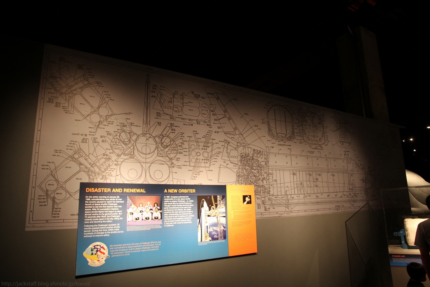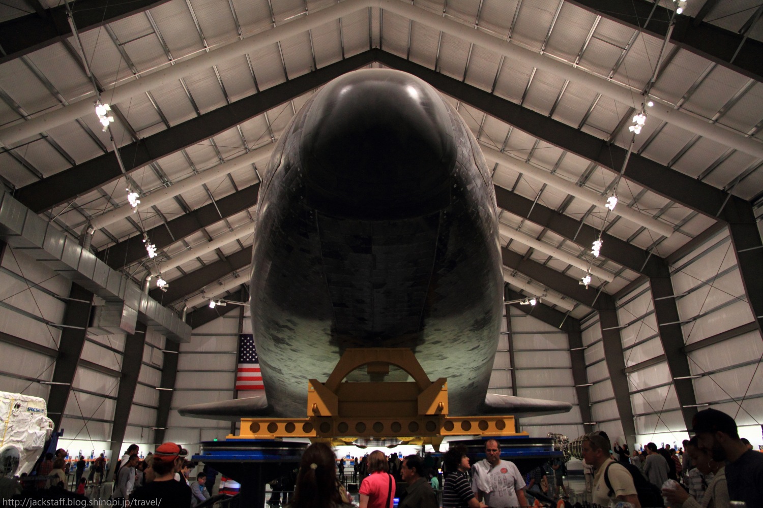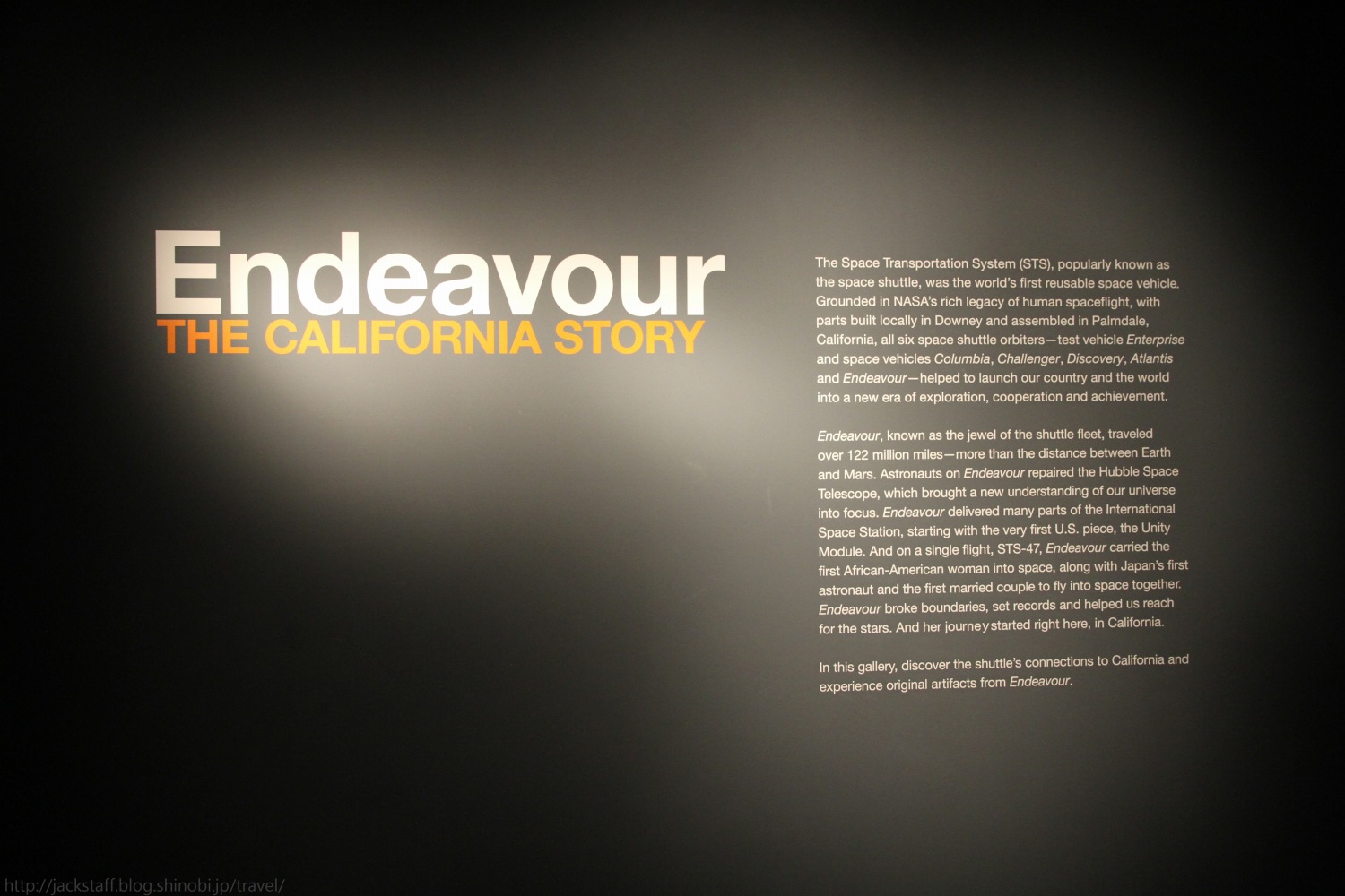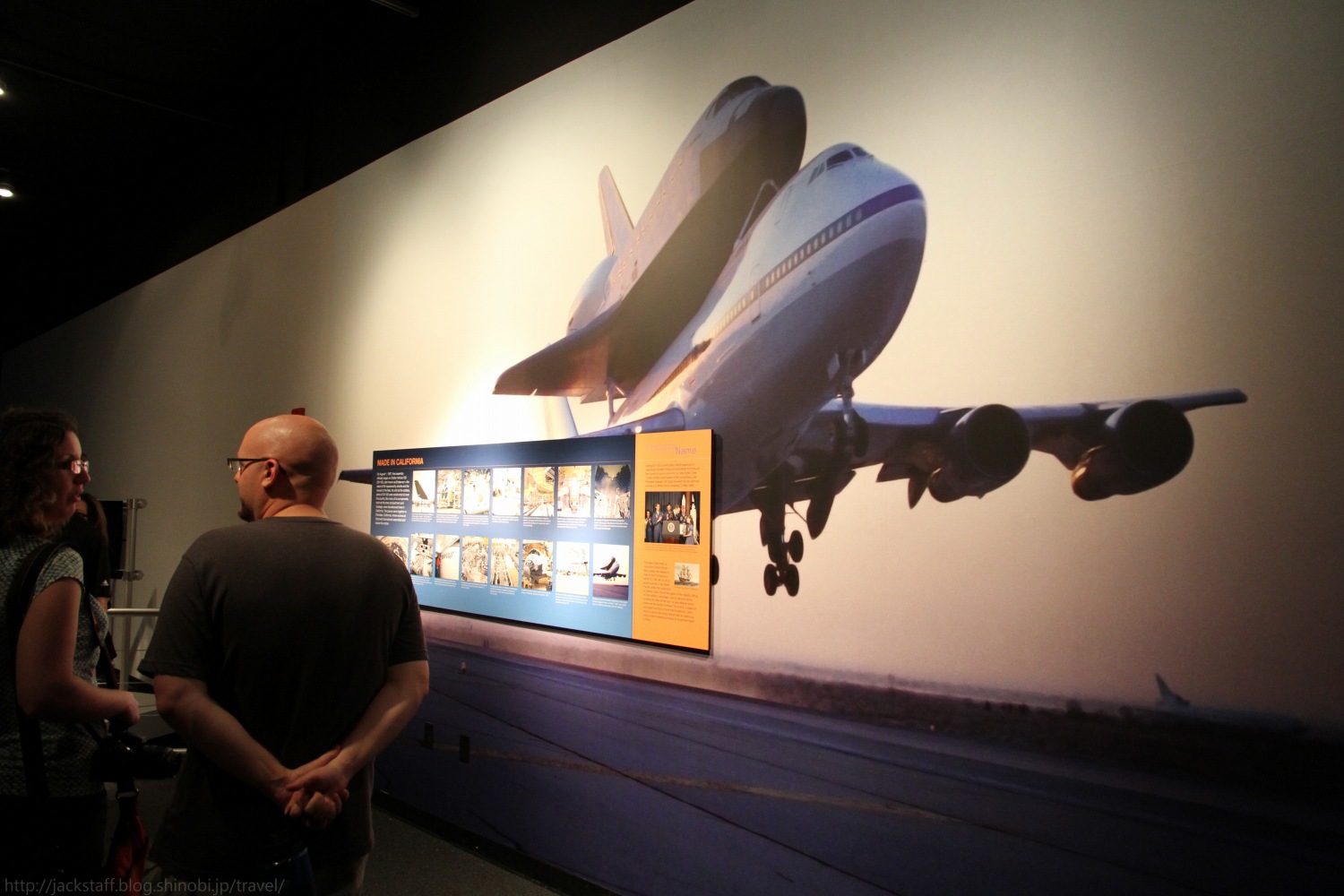 オービタとは軌道船部分であるこの機体のこと、スペースシャトルとは厳密にはオービタに補助ブースターと燃料タンクが合体した状態、もしくはこのプロジェクト自体のことを言う。エンデバーのOV-105というのはOrbiter Vehicleの略だ。 このオービタはこれまで実験機のエンタープライズ含め6機だけが実機として製造されたわけだが、エンデバーが製造されたのは1986年のあのチャレンジャー爆発事故により損失した機体の補充のためだった。1992年の初ミッションから2011年の引退まで25回のフライトでNASAを支えた最も若い機体だったわけだ。 そんなスペースシャトル計画も2011年のアトランティスでのミッションを最後に終了してしまった。 それこそ僕らのように80年代後期生まれにとっては物心ついた頃から宇宙への旅と言えばシャトルによるものであったわけだが、1981年の初飛行の時はきっと当時の子供達は、従来のロケットによる手段ではなく乗り物として帰還出来る新しい時代の到来に目を輝かせたことだろう。もしかすると30年先の未来に手軽な宇宙旅行の姿をイメージしていたかもしれない。そして僕達もまたこの方法がこれからもスタンダードだと疑ってやまなかった。 だが現実は違った。2003年のコロンビア空中分解事故、それに伴う安全対策の見直しでただでさえ試算以上のコストがかかっていた計画は脆くも崩れ去ってしまった。皮肉なことに当初使い回しが効き、使い捨てよりも安いと考えられていたシャトルは結果として使い回しの安全対策を強化していくことで莫大な費用を必要としてしまった。250万個もの膨大なパーツにより構成され、「人類史上最も複雑な機械」と言われる機体の使い回しは安易な事ではなかったのだろう。 しかしながら宇宙への挑戦が終わったわけではない。 スペースシャトル無き今はロシアのソユーズだけが頼りだが、今後は民間が本格的に参入してくることだろう。それで競争率が上がり発展していくかもしれない。もちろん安全性を軽視しない程度にだが。 何はともあれ、このスペースシャトルという有人宇宙飛行の計画自体が与えてくれた夢みたいなものは果てしなく大きく、少年時代に宇宙へ関心をもつきっかけとなったことは間違いない。これからはこのカリフォルニアの地で教育教材として貢献し続けていくことだろう。 宇宙は広大だ。 California Science Center