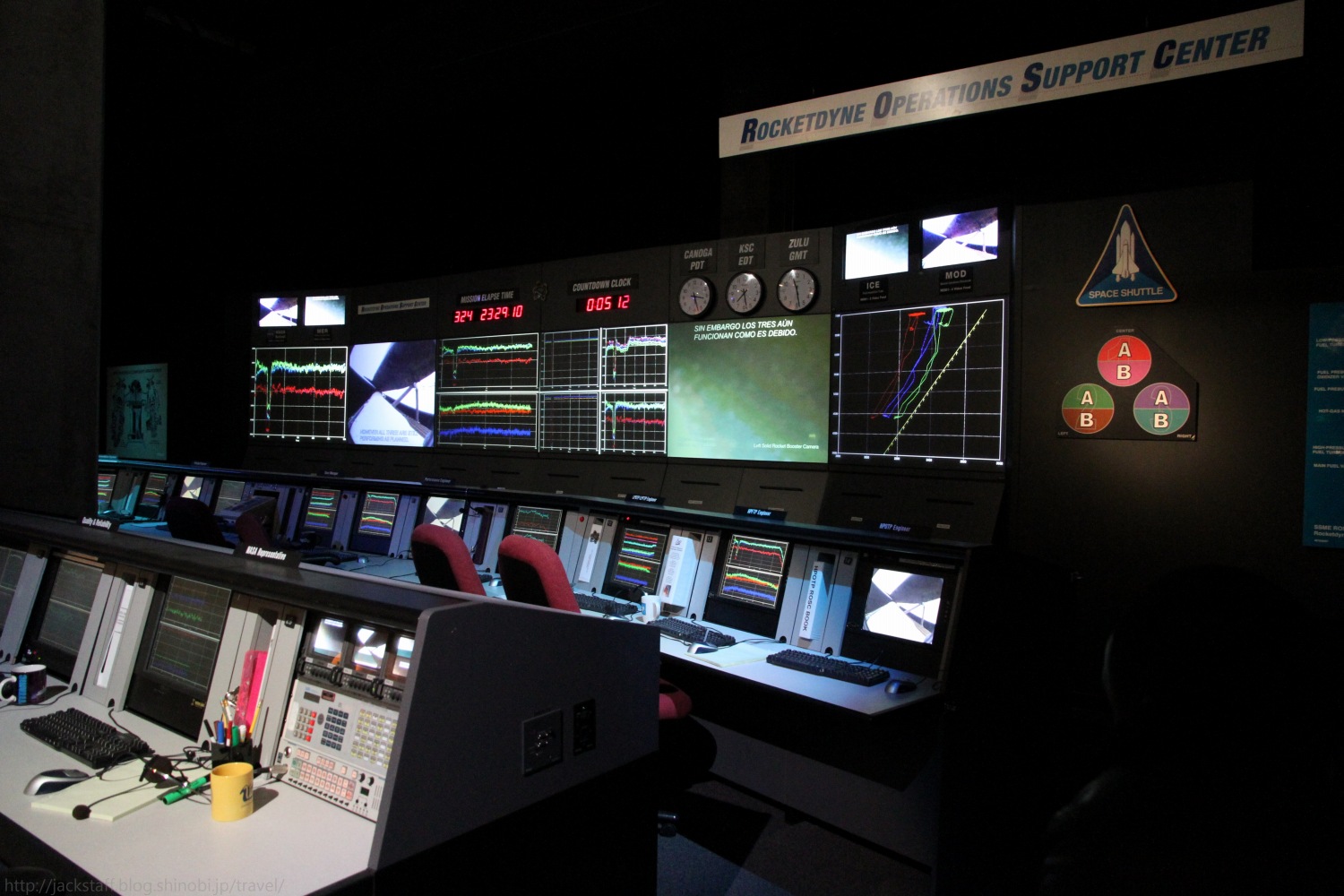 右:Fuel Cells、水素と酸素を化学反応させ電気を作る燃料電池だ。これが3機搭載されている。また化学反応で電気と共に生成される水は飲料水として再利用される。 左:Rocketdyne Operations Support Center (ROSC)、管制室のように見えるがどうやらこれはシャトルのメインエンジンを作っているRocketdyneの物のようだ。つまりはエンジン部分の監視だろうか。当時はプラット&ホイットニーと同じカリフォルニアのCanoga Parkにあり、全ての打ち上げをそこから監視していたらしい。今回それがここへ移されたと書かれている資料もあったので本物かもしれない。