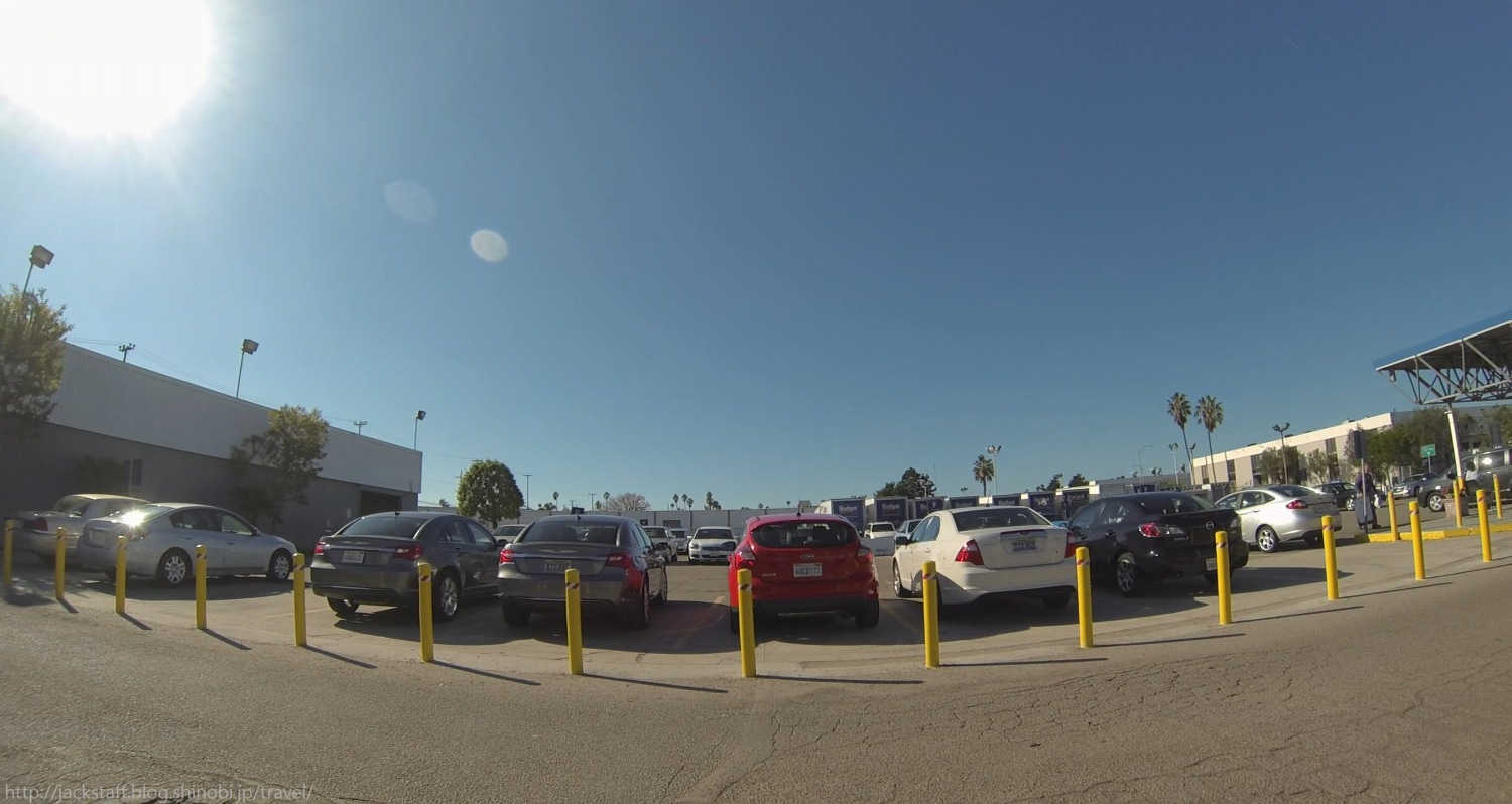 ザ・ビッグ・エンデバー 僕がロサンゼルスに行く半年ほど前、退役予定だったスペースシャトルのオービタ「エンデバー」がダウンタウンにあるカリフォルニア科学センターで展示されると言う話を耳にした。展示開始は10月末から、実は当初の出発予定は9月だった。僕はどうしてもこの機会に見に行きたいと予定を再調整していたのだが、結果として仕事のプロジェクトが延びた事や、Van Halenライブの延期などが重なり11月出発に変更することが出来た。そんな2012年11月19日、つまりは一般公開から3週間も満たない展示したての機体に幸運にも会うことが出来る。 だがその前に一件寄りたい場所がある。アメリカでの生活にもたいぶ慣れてきたことだし、ついにレンタカーを借りるのだ。 ホテルからバスとメトロレールを乗り継ぎLAXへ、そこからレンタカー会社別の専用バスで向かう。今回借りたのは格安海外レンタカー会社の一つ、ダラーレンタカーだ。 予約は日本から入れていたのだが、店舗で確認をしてみるとオプションの保険とGPSで予想以上に値が張った請求書が出てきた。 確か予約時に保険加入パックと書いてあったはずだが、店員としばらく話し込んでいたが結局分からず、初めての地と言うこともあり初期に提示されたプランで妥協することにした。 どうも仲介予約サイトとの連携が悪かったらしく僕自身も事前に保険内容を再確認しておかなかったことを後悔した。結局結構な金額になってしまった、これなら案外Hartzでも変わらなかったかもしれない。 まぁいい。気を取り直して書類を受け取る。どうやら店舗横の倉庫内にキーが付いたまま並べられている車を指定ランク内から好きに選べるようだ。 黒のクライスラーにするか迷ったが予約時に指定していたのと同じダッヂ・アヴェンジャーにした。予想よりもしっかりした内装をしている、いい車だ。 左:倉庫内にも車両がズラリと並んでいる。ランク分けされているのでその中から好きな物を選び乗って出るわけだ。