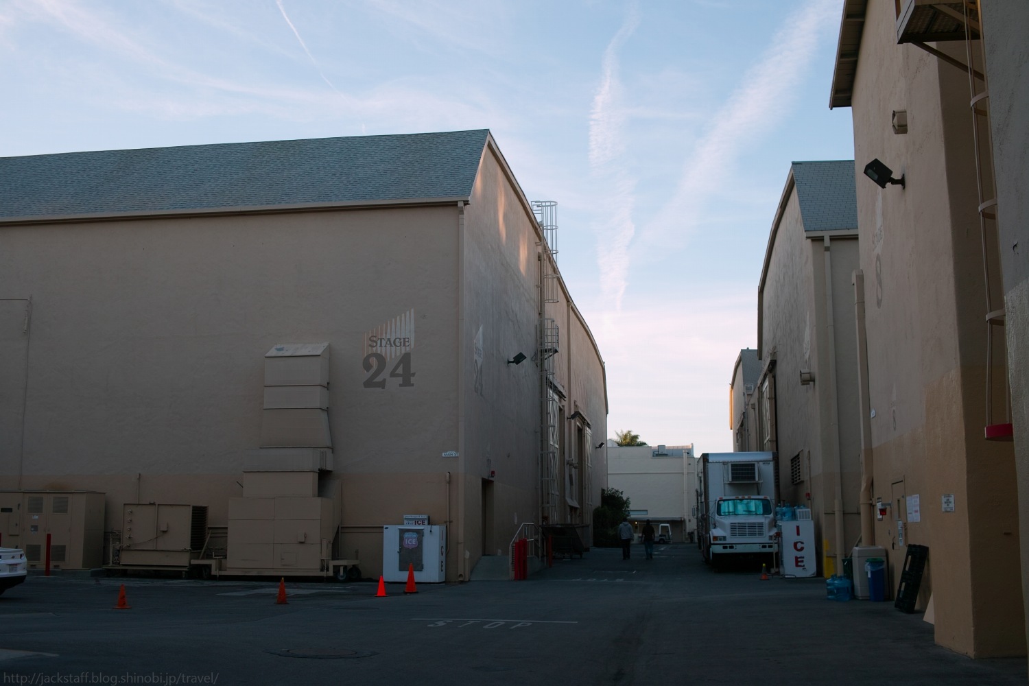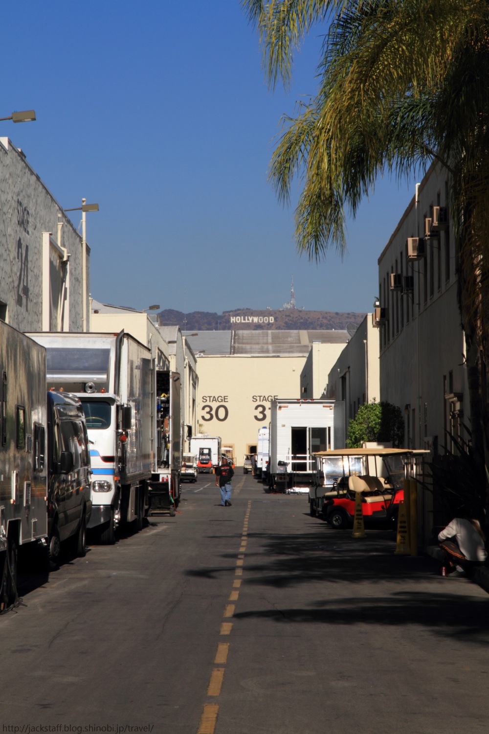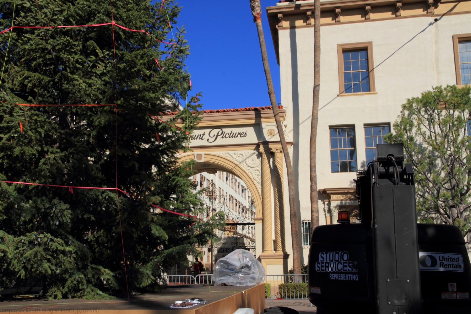 月曜日。先日予約なしで参加出来なかったスタジオ・ツアーに再挑戦する。今回はきちんと事前に予約を入れていたから大丈夫だ。ただホステルのフリーWi-Fiでカード決算するのは少し気が引けたが、特に問題も無く完了した。 まずはパラマウント・ピクチャーズだ。 ゲート脇のスタジオ・ツアー客待合場所に通される。簡単なベンチのある屋外だったのだが、晴天の直射日光の降り注ぐベンチに座りながらもう少しゆっくり来てもよかったと後悔していた。 パラマウントのスタジオ・ツアーは朝9:30から14:30までに30分間隔で開催されており、団体以外の定員は見た感じ各回10人未満のようだ。基本的には土日も開催されている。ちなみに2時間のツアーで48ドルだ。また、通常よりも豪華なVIPツアーも用意されており4時間半というツアー時間にランチやお土産写真、アーカイブやスタジオ施設へのVIPアクセスなど盛り沢山な内容だ。ちなみにこちらは165ドル、もちろん僕が参加するのは通常ツアーだ。 しばらくするとメガネにスーツのインテリっぽい男性がやってきた。今回のツアーのガイドらしい。 僕は男性客一人と、少女二人を連れた家族客一組と一緒になった。映画制作というよりはセレブに興味を持つ女の子達、といった感じだろうか。まぁジャスティン・ビーバー感は出ていなかったのでとりあえず安心した。 まず簡単なツアーの説明を受けたあと、インカムを渡される。多少離れて散策しながら着いて行ってもガイドの解説は聞こえると言うわけだ。これが意外と有難い。 時期はまもなくクリスマス、ここはあの有名なブロンソン・ゲートなのだが、噴水の場所にツリー設置真っ最中でまともに撮影出来なかった。