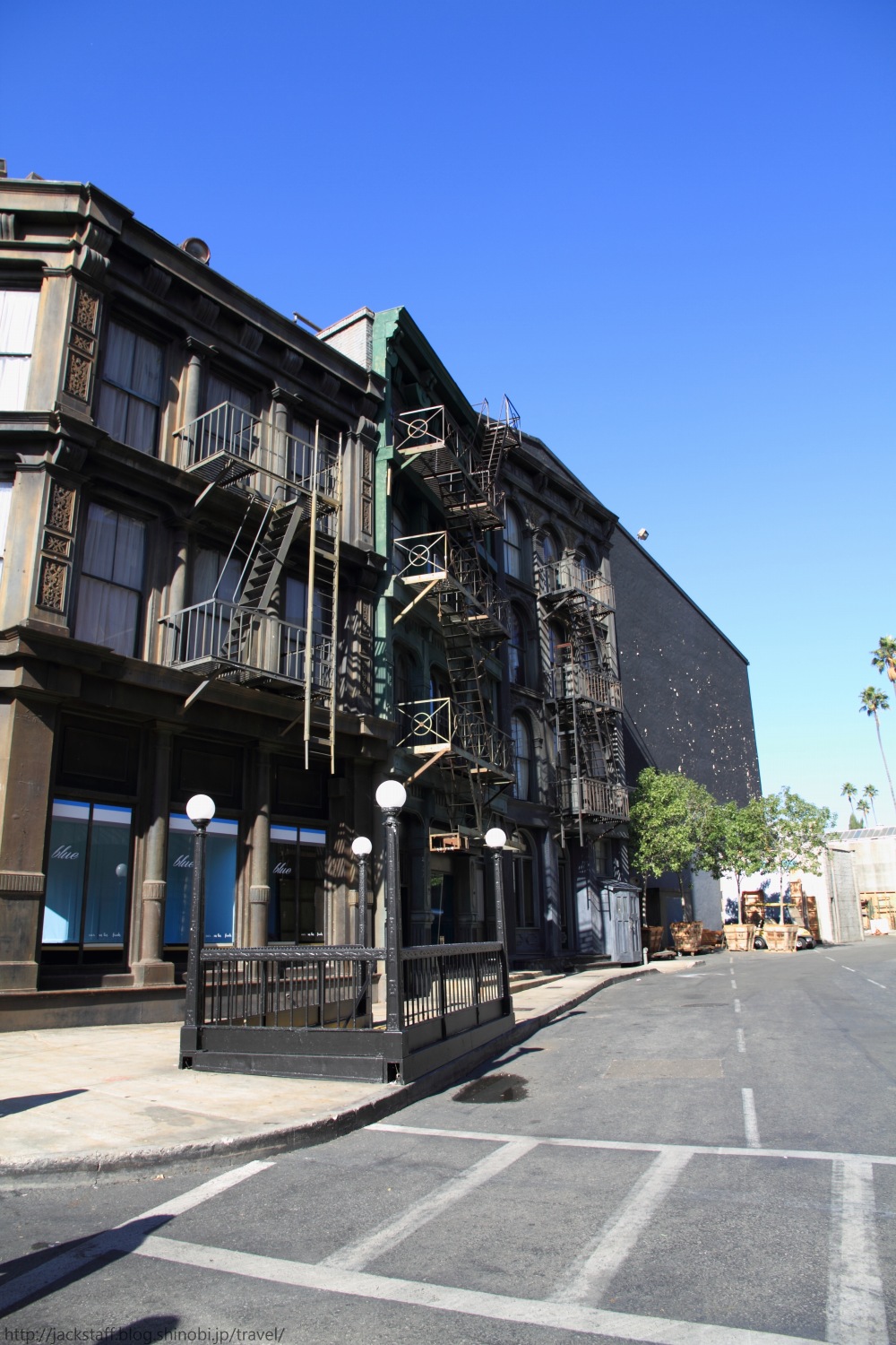 右:左の建物は「バニラ・スカイ」で使用されたセットだ。そして同じ建物か奥の物か確認が取れなかったが「Mr.&Mrs. スミス」にも使われていたらしい。 ニューヨークの町並みが丸ごと再現されているNew York Streetだ。数多くの作品がここで撮影された。確か「ゴーストバスターズ」で使用された建物もあると言っていたはずだ。しかしここは外観のセット、中身は何もなく吹き抜けで機材を入れられるようになっているものもあった。