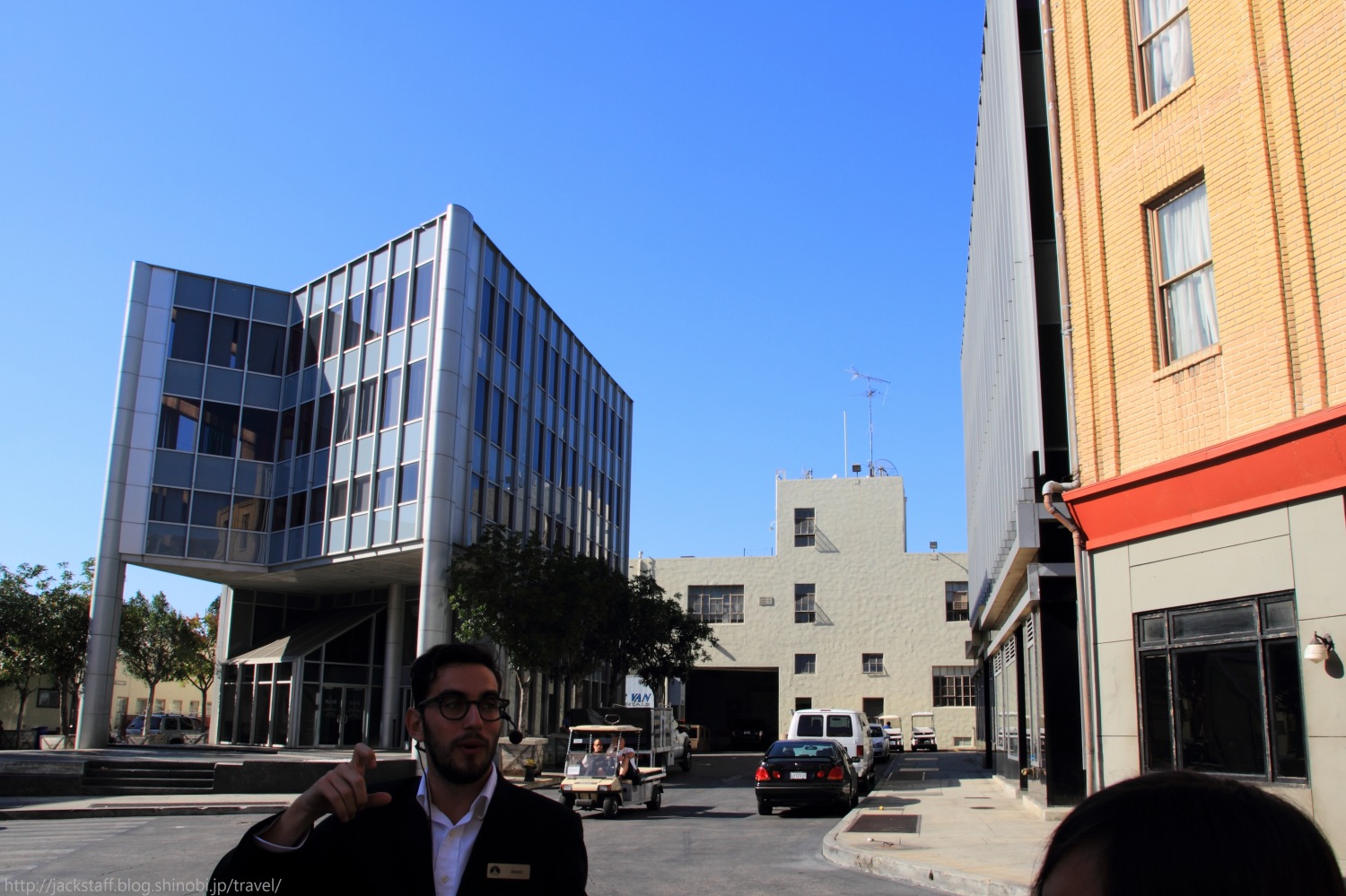 LA スタジオ・ツアー LA滞在中にパラマウント・ピクチャーズとソニー・ピクチャーズのスタジオ・ツアーに参加した。他にもワーナーやユニバーサルもツアーを行っている。ユニバーサルは確かユニバーサル・スタジオ・ハリウッドのアトラクションとして参加する形だったはずだ。 予算はどこも大体50ドル前後と意外と高い。運がよければハリウッドセレブに会える、と言うのが触れ込みのようだ。 こちらはソニー・ピクチャーズのThe Thalberg Building、コロンビア・ピクチャーズの本拠地だ。この中に歴代受賞のオスカー像が展示されている。