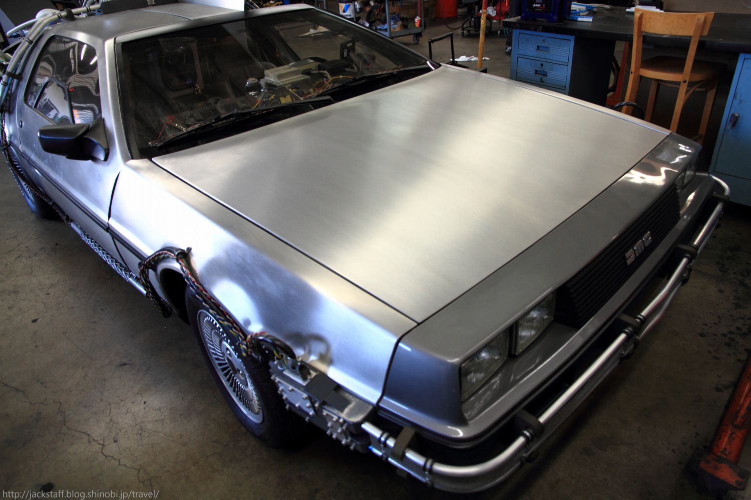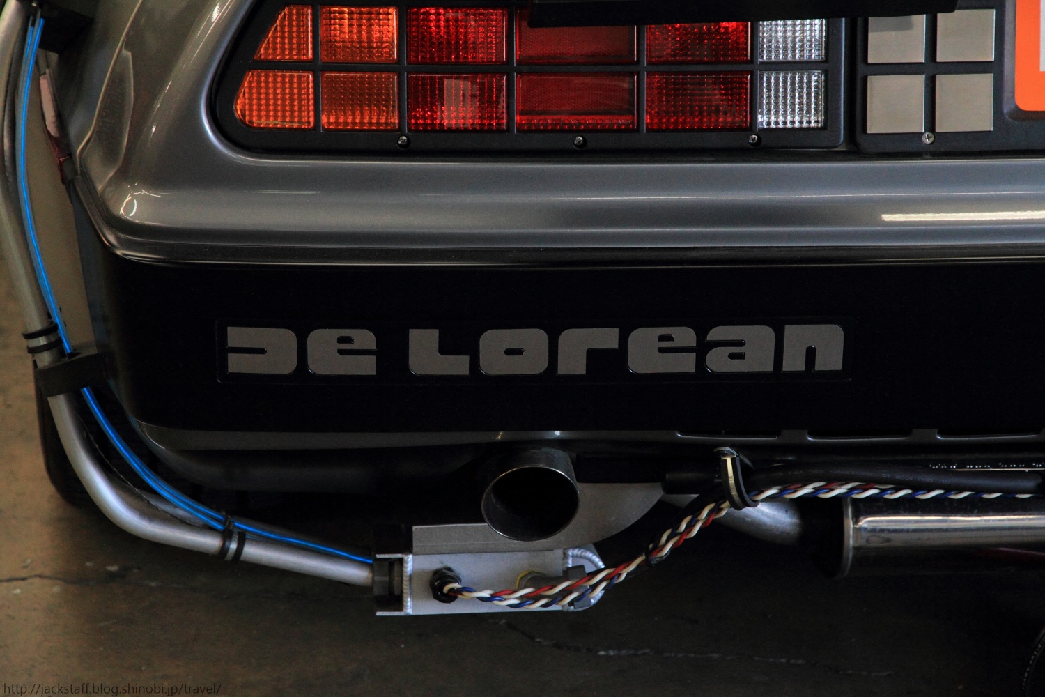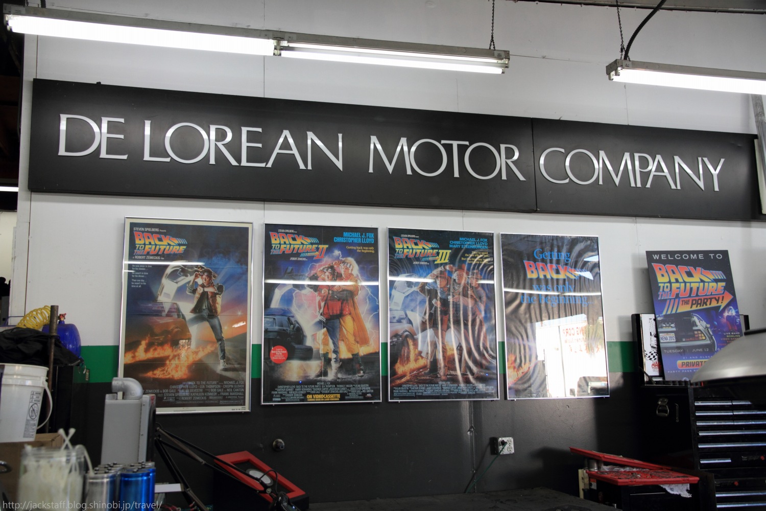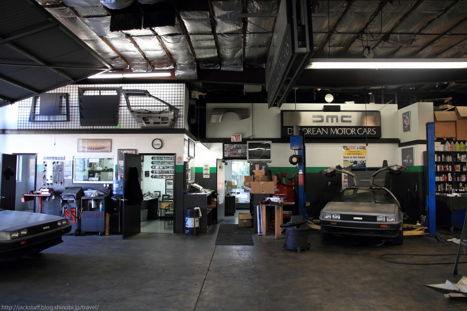 BTTF デロリアン 以前SNSで流れてきた一枚の写真があった。それはBTTFこと「バック・トゥ・ザ・フューチャー」のデロリアンを数年かけて自作してしまった、という写真だった。 この写真の出処がデロリアン・モーター・カンパニー・カリフォルニア、場所はガーデン・グローブ、アナハイムの近くだ。 レンタカーを借りたら行ける範囲内だと、出国前にその人物に見学したい旨をメールしていた。返事はOK、平日なら仕事をしているからいつでも見に来てくれ!といったフランクなメールが返ってきた。 今日はデロリアンを見学にそのDMCカリフォルニアへ向かう。 あった。ここがDMC、デロリアン・モーター・カンパニー・カリフォルニアだ。さっそく入り口前にずらりと並んだDMC-12が出迎えてくれる。これは技術スタッフのもののようだ、ナンバープレートにDMC TECHと印されている。 受付の女性に日本からメッセージを送った者だと説明すると快く奥へ通してくれた。自作デロリアンのオーナーであるダニーは電話対応で忙しそうであったが、その合間を縫って出てきてくれた。 さっそく「君はデロリアンオーナーかい?」と問われたが、日本では残念ながら手に入りにくい。カリフォルニアで暮らす時は買うよと伝えておいたが早速ヘビーな質問だ。 これが自作のバック・トゥ・ザ・フューチャー・デロリアンだ。 自作とは思えないほど完璧なまでに再現されている。おそらくこれはパート1のラストからパート2に登場するデロリアンだろう。思わず"Great Scott!!"と叫んだが笑われてしまった。 外部の電源スイッチを入れ、おもむろに運転席横のレバーを回すとあのタイムサーキットと次元転移装置が光り始めた。感動だ。あとは88マイル出すだけだが、もちろんこのバージョンは"We don't need roads"だ。 左:タイムサーキットだ。上から目標の時間、現在の時間、出発の時間となる。