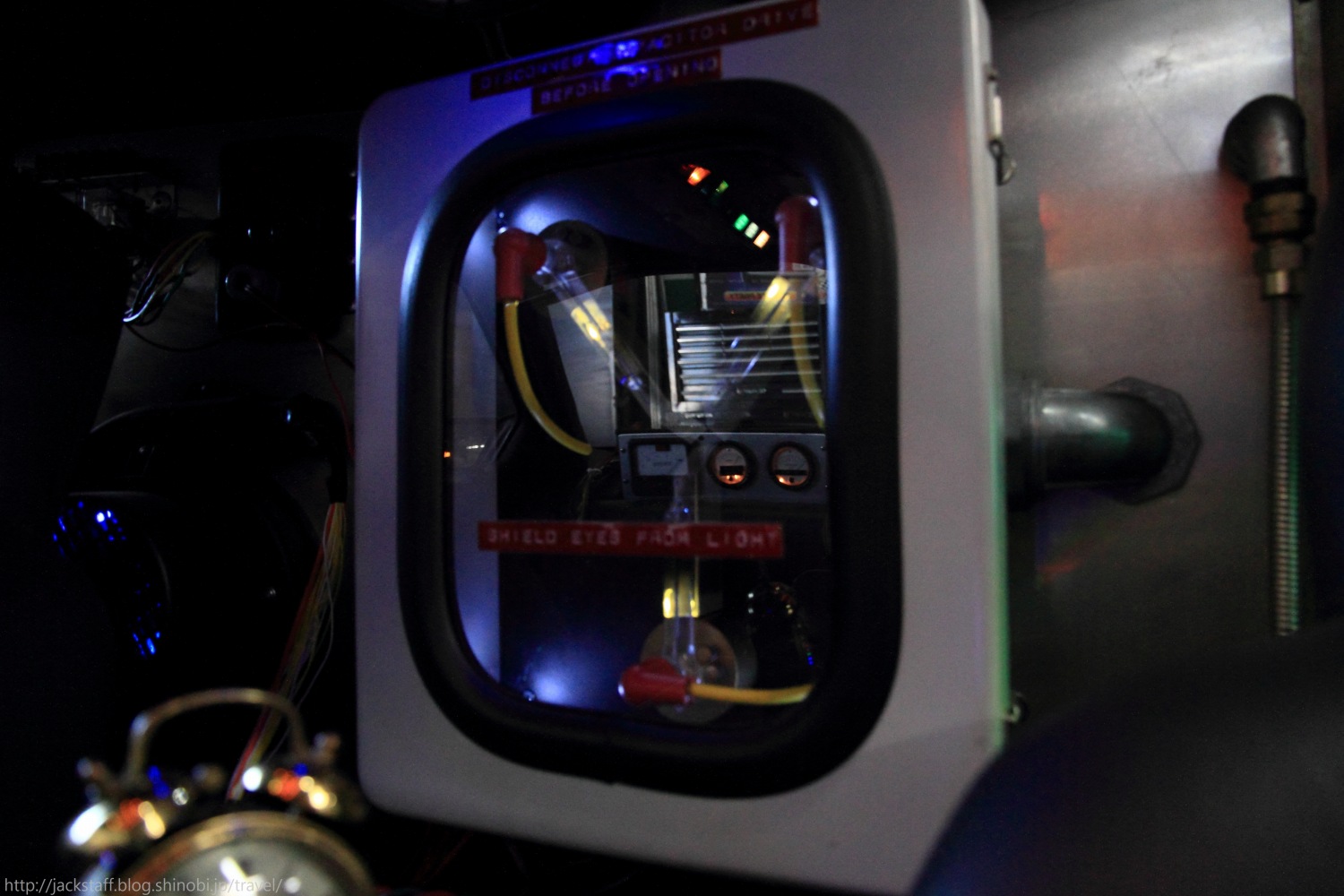 右:次元転移装置、"Flax Capacitar"だ。 車内の再現も見事だ。