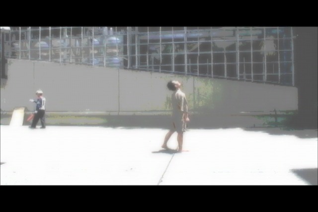 そこに着目し、ものすごくゆっくりと後ろ歩きする男の映像をプロジェクターで流し、映像はゆっくりなのに光のスピードで進んでいるというパラドックスを表現してみたわけです。