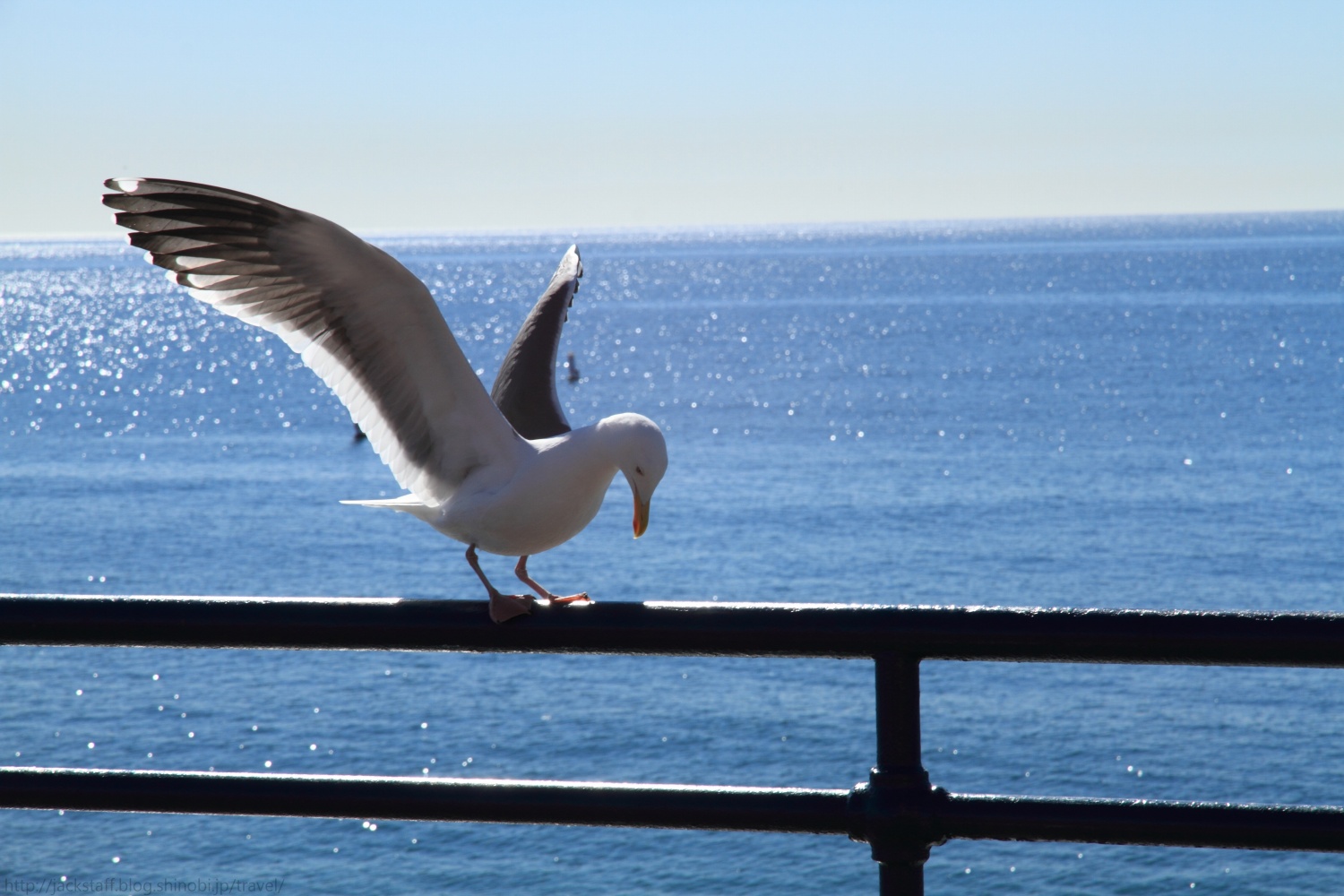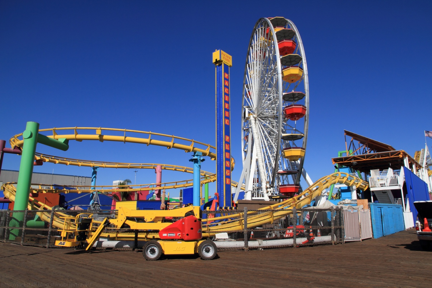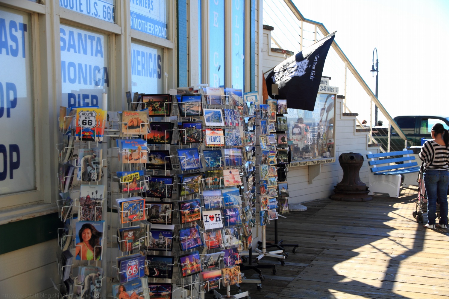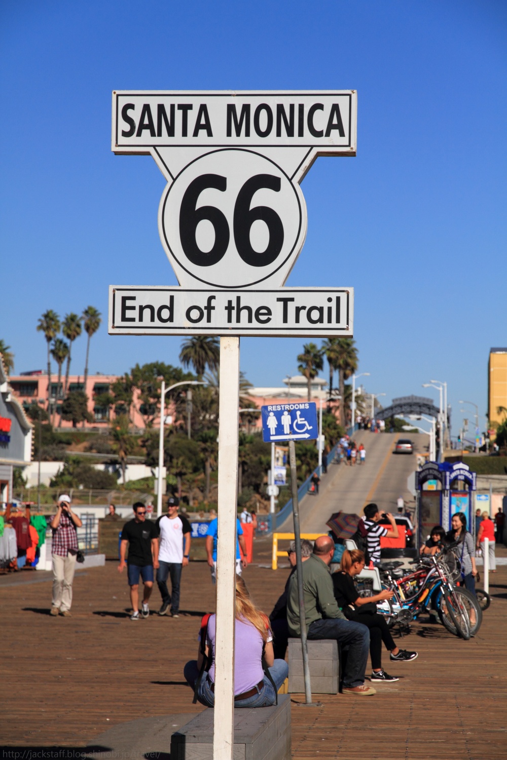 サンタモニカ・ピア 国内旅行でもそうだが、旅先では宿泊地の周辺を歩いて回るのが好きだ。 車があるとすぐに遠くへ行ってしまうが、歩きは帰りのことも考えるからか宿を中心に円を描くようにじっくりと散策することが多いので、車では見落としてしまうような小さな発見がたくさんあって面白い。出来るだけイヤホンは付けない、耳からの情報にもまた多くの発見があるからだ。 ロサンゼルス到着の翌日、空は青く澄み渡り痛いくらいの日差しが照りつける快晴だった。とても心地が良く、まさにイメージしていたカリフォルニアそのものだ。気温は長袖でちょうどよいくらいだが、日陰に入ると少し肌寒い。 まず現地に着いたらプリペイド式の携帯電話を買おうと思っていたので、昨夜のサード・ストリート・プロムナードを歩く。夜とはまた違った印象でリゾート地の風格を醸し出している。 何件かエレクトリック・ストアをまわり最終的に紹介されたT-Mobileというチェーン店へと向かった。ウィルシャー・ブールヴァード上にある店だ。 プリペイド携帯はあったものの、確かプリペイド番号と本体のセットで最安値が80ドル。予想していたよりも値が張ってしまったため断念した。 だが案内をしてくれていた店員のスレンダーで褐色美女のお姉さんは諦めきれなかったのか、iPhoneを持っているならSIMだけ入れ替えれば行けるとAT&TのSIMカードを入れてくれた。 もちろん僕はSIMロックされているiPhoneだと分かっていたのだが、これもコミュニケーションだと接続エラーが出るまでたわいない会話を楽しんだ。つまりスレンダーにサレンダーだったわけだ。 ウィルシャー・ブールヴァードをしばらく歩くとオーシャン・アヴェニューへと突き当たる。一面に広がる太平洋が年間325日晴天と言う陽の光を受けてギラギラと輝いている。その手前を走るのがパシフィック・コースト・ハイウェイ、サンフランシスコへと続く州道1号線だ。 このアルバムのタイトルは収録スタジオの住所だと言われているがそれはマイアミでの話、ここはオーシャン・アヴェニューである。仕方が無いので461オーシャン・アヴェニューを探しながら歩く。 海からの潮風を右手に感じつつ、しばらく歩くと海上にひときわ目立つテーマパークが見えてきた。サンタモニカ・ピアだ。 あの有名なゲートをくぐり州道1号線をまたぐ橋を下っていくと観覧車やジェットコースターがあるパシフィック・パークの入り口が見えてくる。タコの形をしたオブジェのある場所だ。面白い形をしている。その横では空中ブランコの体験が出来るようだ。 また、ここサンタモニカ・ピアはルート66の順方向終着点としても有名だ。 平日にも関わらず多くの人で賑わっているが、この開放感とカラッと乾いた澄んだ空気のおかげか、とてもゆっくりとした時間が流れていた。 僕は自販機でミドリ色の炭酸飲料を買いベンチで暫く海を眺めていた。あまり美味しいものでは無いはずだがロケーションのお陰か美味しく感じてしまう。 こちらのパトカーはいちいち格好良い。 ゆっくりと水平線へと沈んで行く夕陽は本当に美しく、定番だがフライデイ・ナイト・ファンタジーが頭にずっと流れていたのは言うまでもない。 水平線に日が沈むとロサンゼルスの街は電気を消したように一瞬で暗くなる。それだけこの街は太陽と密接な関係にあるのだろう。 さあ、どこかで夕食を食べてホステルに戻ろう。 Tips 今回、日本からモバイルルーターを借りて行こうか検討したのだが、一日800円程でオプションを合わせると一ヶ月で3万円ほどになり予想より高かったため使用しなかった。 しかし上記のプリペイド携帯や、後の話で出てくると思うが外出先での連絡のやり取りやレンタカーのナビの問題など、結果としてモバイルルーターを借りていた方が安くて安心だった気がする。 宿のフリーWi-Fiも弱い場合が多く、混雑時のカフェや部屋では使用できない場面が多かった。またロサンゼルスは街中にはCity Wi-Fiが飛んでいる地域があるが、これもまた電波が弱くなかなかログイン出来ない。 アナログの地図で旅をしたいから必要ないと言う人も、外出先での連絡含めネットに繋ぐ可能性がある場合は検討してみても良いかもしれない。 旅のお供