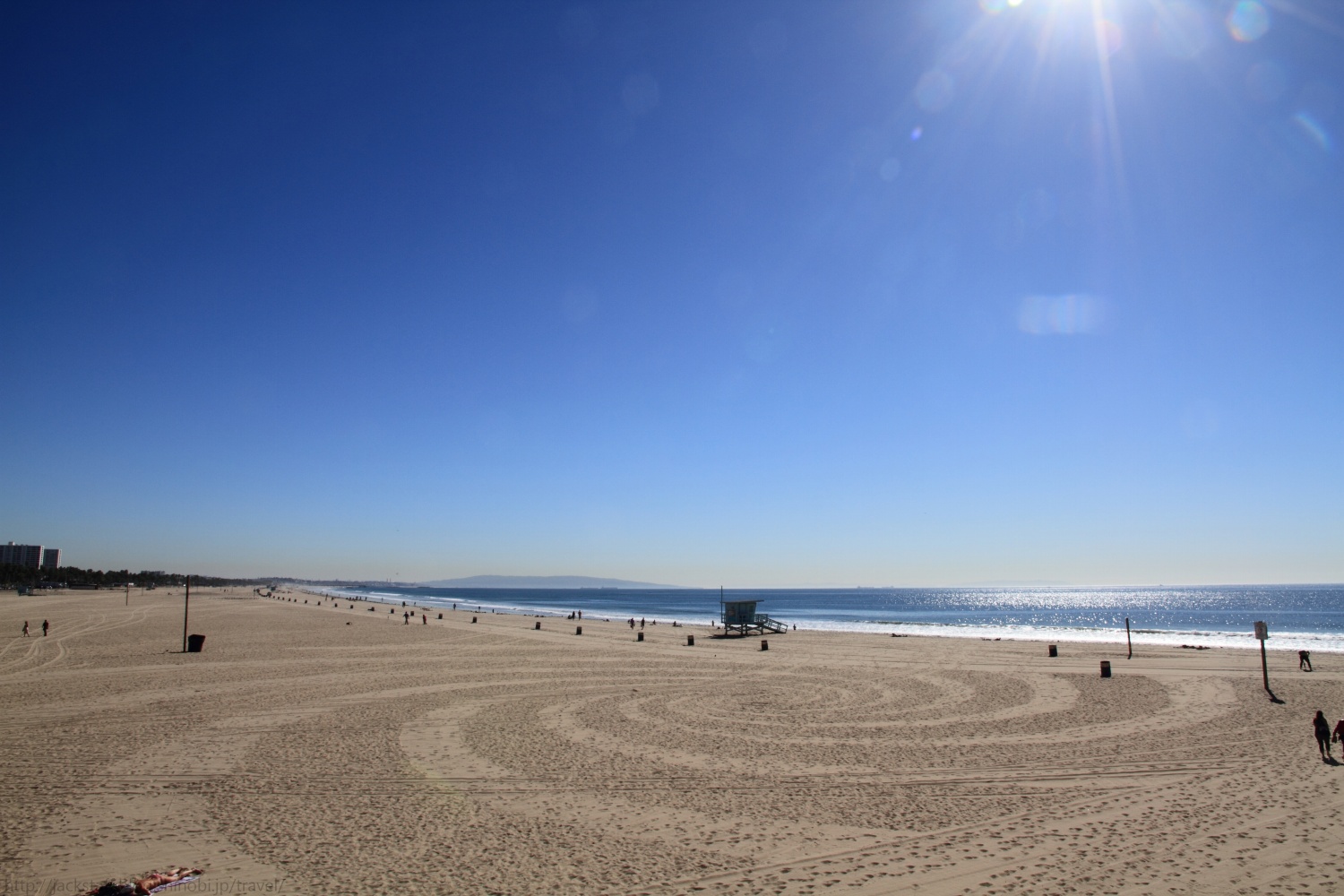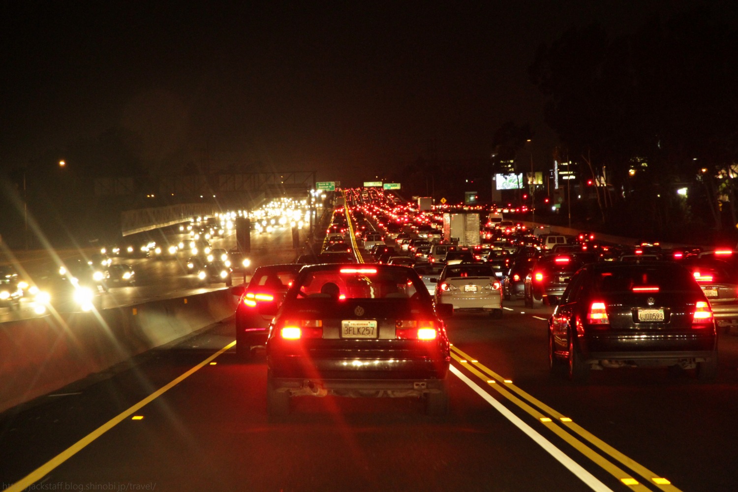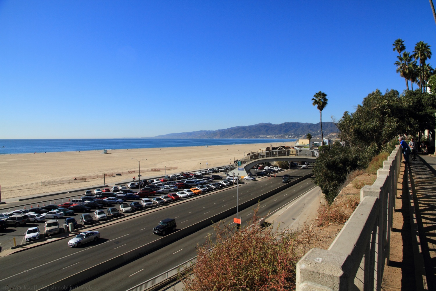 ロサンゼルスへ到着 旅慣れない50Lのスーツケースを転がし、背中にはカメラ機材をぎっしり詰め込んだリュックサックを背負い、11月の肌寒い羽田空港を飛び立った。そう、アメリカへ向かったのである。 単身でアメリカへ、しかも一ヶ月も周遊する旅は初めてだった。中学生の頃、交換留学生として一度だけオレゴンのポートランドへ行った事があったが、それ以来は憧れとしてだけの存在だった。 それにしても久しぶりの飛行機はテンションがあがる。機内では時間帯の都合もあり映画は特に見なかったが音楽チャンネルで先日出たばかりの森高千里SINGLESが延々と流されていたのは、まだ買えていなかった僕にとって嬉しかった。他にも山下達郎の専門チャンネルなんかもあって半々くらいで聞いていた気がする。不思議と洋楽チャンネルに合わせなかったのは暫く日本文化から遠のいてしまうためか、潜在的な不安か、もしくはあまり良い曲が流れていなかったからかは定かではないがとにかくあまり聞かなかった。 そうこうしているうちにランディングアプローチへ入ったとアナウンスが入る。閉められていたサンシェードを開けると海上から陸地が見えてきた、アメリカ大陸だ。 時刻は夕暮れ、大きく伸びるフリーウェイには規則正しく並ぶヘッドライトとテールランプが輝き、海岸線の道路脇には大きなヤシの木が見えてきた。カリフォルニアの大地を紅く染めながら水平線へと沈んで行く美しい夕日を受けながら、機体はLAXへと降り立った。 少し話がずれるが、ロサンゼルス国際空港、略してLAXの読み方が「ラックス」なのか「エル・エー・エックス」なのか暫く迷っていたのだが、どうやら後者の方が正解らしい。出国前に滞在地を舞台とする映画を何本も見直していたのだが、その中の確かファイトクラブでエル・エー・エックスと発音していた。 Los Angeles International Airport 1 World Way, Los Angeles, CA 90045 http://www.lawa.org/welcomelax.aspx ロサンゼルスに来たのは初めてだった。夜間は危険だから出歩かない方がいいと何人もの経験者にアドバイスをしてもらっていたのだが、入国審査までに時間がかかってしまい空港を出たのが21時を回ってしまっていた。18時以降は外出するなとさえ言われていた僕にとっては早々の危機的状況である。 さらにインフォメーションで聞き、乗り込んだ無料シャトルバスがいつまで経っても目的地のシティバスターミナルに到着しないのだ。空港駐車場内をグルグルと回っているだけでまた一人また一人と乗客が降りて行き、結局一人になってしまった。 さすがに間違っているのではと思いドライバーに聞いてみるが、ついたら呼んでやるから待ってろとのこと。どうやらだだっ広い駐車場を全て周り終わってからターミナルへと向かうようだ。 さすがは自動車社会、バスで移動しようなどと考えたのがそもそもの間違いか。 そこからさらに乗ること十数分、LAXシティ・バス・センターに到着し、BBBことビッグ・ブルー・バスに乗り換える。目的地はサンタモニカのユースホステルだ。 もう空港からは距離が離れているためか旅行用スーツケースを持ったアジア人は目立つ。途中乗ってきたぼろぼろの服の男が小銭をチェンジしてくれとバスの中を歩き回ったあと僕の後ろのシートに座った。 日本人かと彼が問いかけた。まず日本人と言われたことに驚いた。僕はてっきりアメリカ人なんてアジアの人種を判断出来ないと思っていたからだ。意外と日本と言う国は存在感があるのかもしれない。そんな驚きもあり、ロスは気に入ったか、行った事はないが俺も日本は好きだ、などたわいない会話をした。 ここで彼がおもむろにタバコを吸うようなジェスチャーをして、ウィードを試してみるかと言っている。最初は何のことかわからなかったが、どうやら彼が手に持っているのは「ハッパ」のようだ。貴重なお誘いではあるが丁重にお断りした。これぞアメリカ、そしてさすがはロサンゼルス、ついて一時間かそこらでハッパを勧められるとは。そして後ろのイギリス人っぽいお兄さん、笑ってないでフォローしてほしいものだ。 後々知るのだが、サンタモニカは高級住宅地として有名で治安もよく深夜まで遊ぶことが出来るようだ。偏りの激しいアクション映画好きが高じてアメリカのイメージがすこぶる危険な物になっていたのだが、どうやら現実はそこまででもないらしい。ちなみにそのサンタモニカが運営するビッグ・ブルー・バスも治安の悪い地域は通らないので車内も比較的安全なのだそうだ。よく読めばすべて地球の歩き方に書いてあったのだから事前にしっかりと読んでおくべきだった。 受付を済ませ部屋でくつろぐ。四人部屋だが、オフシーズンだからかどうやらルームメイトは一人だけらしい。 彼はイスラエルだったか、確か中東の出身だった。長髪髭面に両腕タトゥーでいつもヘッドホンでパンクらしき曲を聞いている。第一印象はなかなか強烈だったが話していると