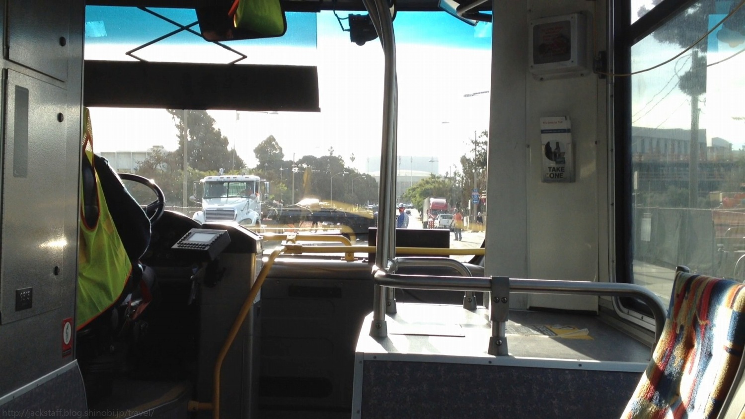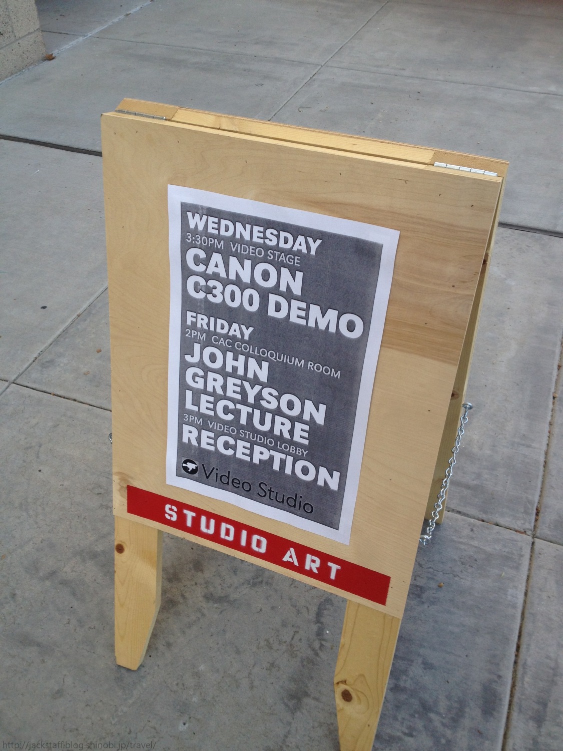 ビデオ・スタジオ ロサンゼルスには何人か友人がいる。 その中の一人にユニバーシティ・オブ・カリフォルニア・アーバイン、UCIのフィルムコースの関係者がいるのだが、その彼に授業を見学にこないかと誘ってもらっていたのだ。 僕もまた映画好きを拗らせて東京でポスプロの仕事をしているのだが、幼少期から好んで見てきたのはTSUTAYAのアクション棚に並ぶハリウッド大作ばかりだった。つまりここロサンゼルスでの映画製作の断片を垣間見るのは長年の夢であり目標であり、今回の旅の目的でもあった。 大学のあるアーバインはサンタモニカからは少し遠い。友人がシェアカーを出してくれたので助かったがそれでも朝5時には起きて支度をした。 待ち合わせ場所へはバスで向かう。赤いイモムシのようなフォルムのダウンタウン行、メトロ・ラピッド 720系統だ。大型バスを電車のように二台繋げた姿は実に合理的だ。しかしこれがまたなかなか来ない。厳密には本数が少ないからなのだが、早めに準備をしていたのはこのことを聞いていたからである。 バスの車内から。大型トレーラーの方向転換待ち。肝心の外観をうっかり撮り損ねてしまったが、こんな感じだ(Google画像検索)。 彼と会うのは久しぶりだ。 しかしFacebookでよく見かけていたので何の違和感もなく再会することができた。別の国に居ながら近況を確認しあえるのだからいい時代になったものだ。 友人の運転する車はすぐにフリーウェイへと登った。日本の高速道路に近いが料金は基本かからないし特別変わった入り口があるわけでもない。少し遠くに用事がある時にはとても便利だ。 ただ少し危なっかしい。道路は片側5〜8車線ほどあり、路面はでこぼこ、中央分離帯付近にはゴミが散乱し、全体的な平均速度が時速130kmほどなのだからエキサイティングなどと言っている場合ではない。 そこまでしても車が必要な様子やバスの本数などを見て思ったが本当にロサンゼルスという街は自動車が必須なのだろう。それを友人に話したところ、どうもそこは長年問題になっているところらしい。 その昔、公共交通機関の強化の案が出たらしいのだが、自動車が売れないと困る某大手メーカーの圧力により潰されてしまったのだと言う。本当に馬鹿げた話だ、と彼は言う。現地の人もやはり問題視しているようだ。だが、最近は少しずつだが地下鉄が延びて行っているのだという、確かサンタモニカの周辺でも工事が行われていたはずだ。 これは別の日のフリーウェイの様子だが、当日は朝のラッシュのため車がひしめきあっていた。こんな生易しいものでは無い。 少し話がずれるがシェアカーはIDカード式だった。フロントガラスに設置されている非接触リーダーにカードをかざすとロックが解除されるのだ。僕は日本でもシェアカーを使ったことはまだないので同じシステムかもしれないがこれはなかなか面白かった。そして意外と認識が悪いのだ。 そんな状況もしらばく乗っていると慣れてくる。 どうやら彼は日本語を勉強中のようで、ドナ・サマーの発音がダンナサマーと同じだと言って二人で大笑いしていた。リスニング教材で覚えたらしい、聞かせてもらったがとてもじゃないが役に立つとは思えない可笑しな言い回しの教材だった。おそらく日本の英語教材もこちらの人が聞いたらこんな感じなのだろう。 だが基本は僕が英語を教えてもらう立場だった。 アルコール依存症をアルコホリズムと言うが、それの応用で常習的なクソ野郎のことをアスホリズムと言うらしい。多くのシチュエーションで使える素晴らしい言葉だ。 他にもこれは以前来日時に教わったことだがFワードなんかの汚い言葉を連発する事をトラッカーズマウス、と言うようだ。トラック野郎の口癖、といったところか。こうしてまた無駄知識だけが増えていく。 コロナ・デル・マー・フリーウェイからユニバーシティ・ドライブに入るとUCIへはもうすぐだ。 少し時間があったので先にランチを食べた。有機野菜をふんだんに使ったヘルシーなバーガーだ。ここのポテトフライがお勧めなのだと言う、確かにこれは美味い、ソースが最高だ。 アメリカでは意外と基本なのだがドリンクはリフィル可能、つまり飲み放題なわけだ。サーバーから自分で注ぐのだが、そこに自家製のレモネードなんかも用意してあり、ついつい飲みすぎてしまった。 参加予定の授業はCanon EOS C300をはじめとするEOS CINEMA最新機等を実際に操作出来るハンズオン形式なのだが、それまでには少し時間があるため校内を一人で散策してみることにした。 日本の大学とは比べ物にならない広さの敷地に、おそらくあれは校内用のレンタサイクルだと思われるものなんかも設置してある。一つの街のようだ。 また学生の作品を展示するスペースもいくつかあり、映像作品の上映も行われていた。さすがインターナショナルなだけあり作品の概念やアプローチも多種多様だ。しかし、なんだがアジア人っぽい感性だ