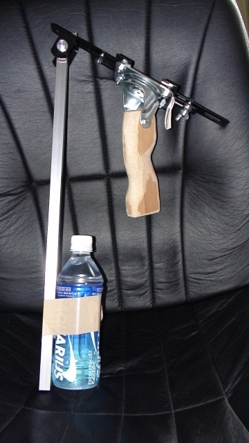制作過程を話す前に、まず最初にステディカムとは何かを述べておきましょうか。 ステディカム(Steadicam)は、「Steady」と「Camera」の合成語であり、カメラを持つカメラマンの体の振動や、カメラを搭載した車両等の振動をバネを利用して吸収し、撮影映像のブレを防止するためのカメラ支持機材である。本来は、アメリカのTIFFEN社の登録商標であり、他社はこの言葉の使用を避けて「防振激減装置」と呼んでいるが、「ステディカム」の名称が広く知れ渡ったこともあり、この名称が一般的となった。 from Wikipedia 要するに「ヤジロベイ」の原理を利用したスタビライザってことですね。 本場のフィルムカメラとかを積むプロフェッショナル用などはこんな感じです。 Steadicam SK2 from TIFFEN 手で長時間支えるには厳しいような大型のカメラの場合はベストにアームのついた「ゴツイ」ステディカムがあるんですね。 まぁ一般的にはこういうのがステディカムだと認識されているようですが、実際はこれでもちゃんと機能を発揮するわけです。 Steadicam Malin from TIFFEN 原理としては同じですからね。 しかし、見た目はしょぼくてもステディカム、これでも15万円ほどします(爆死 というわけで、ステディカムについての雑なお勉強はここまでにして、さっそく制作といきましょう。 まず、何故ステディカムを作ろうと急に思い立ったのか、それはとある映像雑誌のダイジェストみたいなものの記事をネットでたまたま見つけ、そこにステディカム制作、みたいなタイトルのついてるものがあったわけですね。 これをみて「ステディカムって自作できんだ!!」と知り、毎度のごとく調査調査調査…。 「ネットの海は広大だわ」 結構作ってる人いるんですよね。 形状も基本的には同じ、まぁ原理が同じなので必然的に同じようなかたちになるわけですが。 とまぁそんな具合に制作を決定。 なんだかんだで夕方くらいになり、そろそろコーナンに材料集めにいこうかなと思っていたころ、ちんから連絡があり何故か一緒にコーナンへ買出しに行くことに。 でもいざコーナン行ってみると使えそうなパーツがゴロゴロしていてどれを使おうか迷う。 全体像としての図面は作っていたのですが、詳細な長さやパーツまではコーナンに行ってみてきめる予定だったので。 そうしていると、ちんがスタビライザにキャスターが使えるのではないかと思いつく。 確かに、そういわれて見てみるとベアリングつきで素晴らしい回転性。 上下結合部の位置が若干ズレて付けてあることが気になったりもしましたが、これくらいなら許容範囲内だろうと思い、スタビライザにはキャスターを使用決定(笑 当初はゲーム用のジョイスティックをばらしてスタビライザに使おうと考えていたのですが、ひとまずはこれを使ってみることに。 またジョイスティックが手に入ったらこちらも試してみます。 で、その他のパーツなども実際にカメラに合わせてみたりしながら使用するパーツを吟味、徐々に形が決定されていくマイステディカム。 と、ここで「ホタルの光」が。 閉店だよ!! てことで全部は買えず、また今度出直しに。 最終的に3400円のお買物をしてしまいました…。 いいんだよ!!いいんだよ!!!だって買ったら15万だぜ!?3400円なんて安いもんさ!!! てな感じで帰ってから早速制作開始。 わざわざちんに家から工具類を持ってきてもらい、3時間くらいかけてあるパーツで出来るところまで作りました。 詳しい制作手順などは完全版が完成してから特集します。 で完成品がこちら まだアームの部分を半分にして可動式にする予定です。 ちなみにペットボトルは仮のオモリ。 これが心臓部のスタビライザ。 キャスターのタイヤを取り除き、木を削ったグリップを付けてます。 カメラをつけるとこんな感じ。 これだけなのに結構腕にきます。 そんなこんなでテスト版の完成。 名前はキャスターで作ったステディカムで 「キャステディ」とかかな(笑 で、実際にカメラをつけて撮影してみると、これがなかなか難しい! 気にしていたキャスターの重心のズレのせいもあるんですが、やっぱ多少の練習は必要ですね。 そこで本物を触ったことのあるちんの提案で親指で本体を維持する支えのようなものをつけました。 これで断然使いやすくなりました! 上の写真でグリップ上に挟まってる紙ですね。 その後、ちょっとイチミー宅にお邪魔する用事があったので、ついでにテスト撮影してみました。 そのうち映像もアップします。