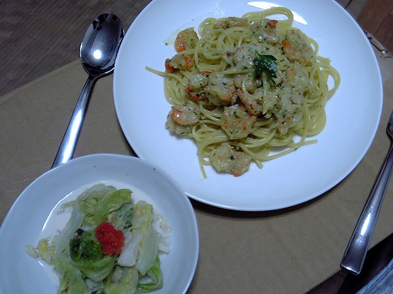 「エビのクリームスパゲッティ」