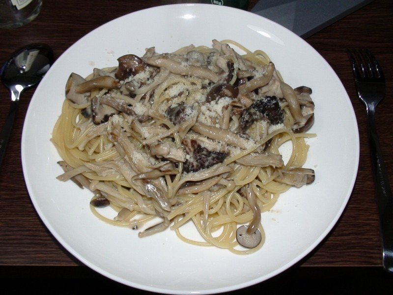 シイタケ、マイタケ、シメジ、エリンギ、エノキをたっぷり入れたスパゲッティ。
