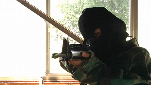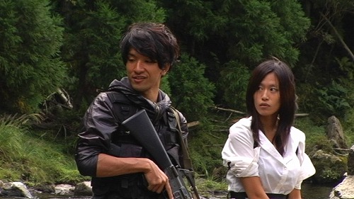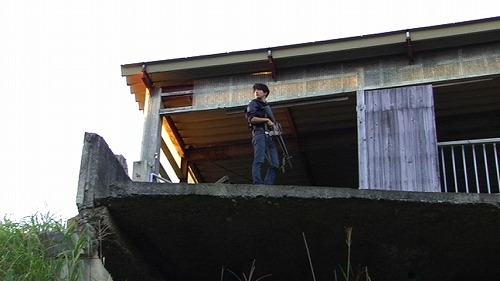 左から「男」役の坂川慶成と「レイナ」役の葛川友理 英語タイトルは「A MAN IN LEO」としていましたが「THE MAN OF LEO」が正しいとかいう意見もあり、とりあえず"邦題"で。 怒涛の一ヶ月でした(苦笑 2日にクランクインし、そこから京都での撮影や久美浜合宿、追加撮影を終え、やっと一段落しました。 とはいっても予定通りに撮れるはずもなく、現在6割ほど撮影完了、あとは難所の五条撮影や、海の撮りこぼしを撮りに行く機会があったらいいななどと思っています。 これから追加撮影の嵐・・・役者やスタッフの皆さんには全然予定通りに進まなくてご迷惑をおかけしていますが、よろしくお願いします笑 さて、ここからは撮影に関して。 今回こそはやりたいことだけに的を絞ってやろう、というスタンスで取り組んだだけはあり、面白い映像は多く撮れたように思いますね。 やはり都心部での撮影は障害が多すぎて性に合わないので、市街地のシーンは少しだけにして、また例のごとく「森」へ入っていったのは気分的にも正解だったのでしょう。 内容や見た目はお約束のB級感満載 M16を振り回す社会派テロリストと、それをブチ殺すタフガイ 一人オーラが本物のヒットマン役のアリト キャラクターイメージが吹き替えのレイナ 再会するバリカンメンバー みんないい顔をしてますね笑 今回は本当にキャストに恵まれていると思います。 やはり舞台俳優は考え方がしっかりしているのですかねぇ、安定感があります。 DOFアダプターを使用したシーン、取り回しに若干難アリ ところで私の場合、これまで撮影しようとすると必ず雨か豪雨か雷雨が降って撮影が出来なかったのですが、今回はなぜか晴天続き。 普段なら喜ぶところですが、雨の代わりにトラブルが続出。 後輪に泥除けを巻き込んだり、モデルガンのパーツが突然割れたり、車がスタックしたり・・・などなど。 おかげで撮影時間は押しに押し、雨よりもたちが悪いことに余計体力と精神力を使う羽目に。 まったく、これならまだ雨のほうがマシだぜ。 そんな感じです。 あとはスクリーンショット、同じようなシーンばかりなのは、全部を取り込んでないからです苦笑